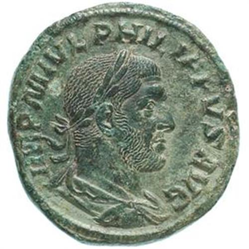 Roman Empire Coins. Philip I (244-249). Sestertius. D/ IMP M IVL PHILIPPVS AVG. Busto laureato, drappeggiato e corazzato a destra. R/ AEQVITAS AVGG SC. L'Aequitas, stante a sinistra, tiene bilancia e cornucopia. RIC 166a. gr. 19.93 AE. SPL/qSPL. Ritratto di grande stile e bellissima patina verde smeraldo, intatta.