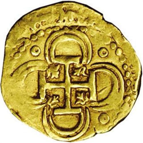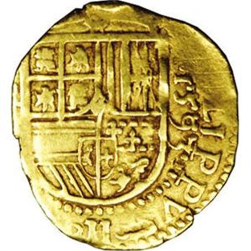 <B>Philip II gold 2 Escudos ND 1593,</B></I> Fr-type of Cal-10, 6.48 gm, VF with full, sharp date, no mintmark or assayer's initials.