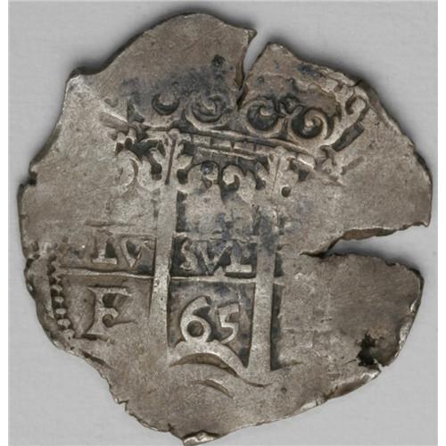 <B>Philip IV cob 4 Reales 1665-E,</B></I> slightly porous VF with two flan cracks.