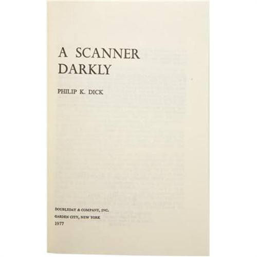 <B>Philip K. Dick</B></I>. <B><I>A Scanner Darkly</B></I></B></I>. Garden City, New York: Doubleday and Company, Inc., 1977. <BR>First edition. Octavo. 220 pages.<BR><BR>Tan cloth with black spine lettering. Overall fine condition.<BR><BR>During his all-too-brief lifetime, Philip K. Dick (1928-1982) completed a staggering number of brilliant science-fiction works, including 121 short stories and dozens of novels. Eight of his stories have been adapted for the screen by such luminaries as Ridley Scott (<I>Blade Runner</B></I>, from <I>Do Androids Dream of Electric Sheep?</B></I>) and Steven Spielberg (<I>Minority Report</B></I>). <I>A Scanner Darkly</B></I> (which was adapted for a 2006 rotoscope animation film by Richard Linklater) deals with drugs in a futuristic society, circa 1986. This first edition appears to be unread. <I>From the Robert and Diane Yaspan Collection.</B></I><BR><BR><b>Shipping:</b> Books & Catalogs (<a target="_blank" href="http://www.heritageauctions.com/common/shipping.php">view shipping information</a>)
