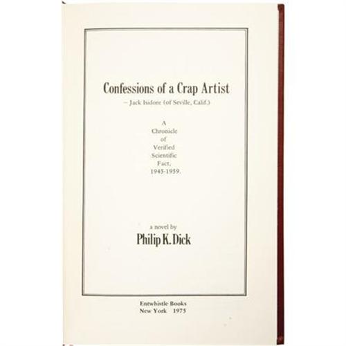 <B>Philip K. Dick: </B></I><B><I>Confessions of a Crap Artist.</B></I></B></I> <I>A Chronicle of Verified Scientific Fact, 1945-1959</B></I> (New York: Entwhistle Books, 1975), first edition limited to 500 copies, 171 pages, brown boards, 8vo. Condition: near fine.<BR><BR><b>Shipping:</b> Books & Catalogs (<a target="_blank" href="http://www.heritageauctions.com/common/shipping.php">view shipping information</a>)