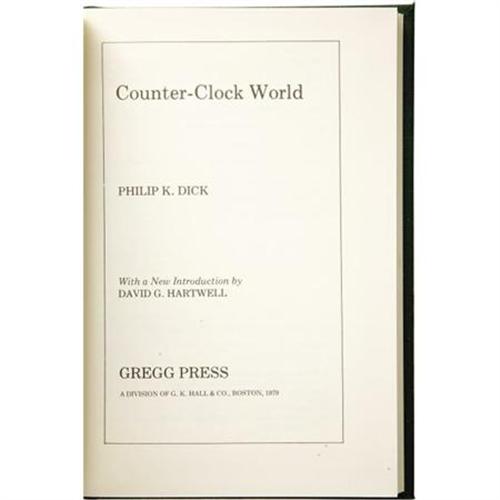 <B>Philip K. Dick: </B></I><B><I>Counter-Clock World.</B></I></B></I> (Boston: Gregg Press, 1979), first reprint edition, 160 pages, green boards, 8vo, no dust jacket, as issued. Condition: fine.<BR><BR><b>Shipping:</b> Books & Catalogs (<a target="_blank" href="http://www.heritageauctions.com/common/shipping.php">view shipping information</a>)