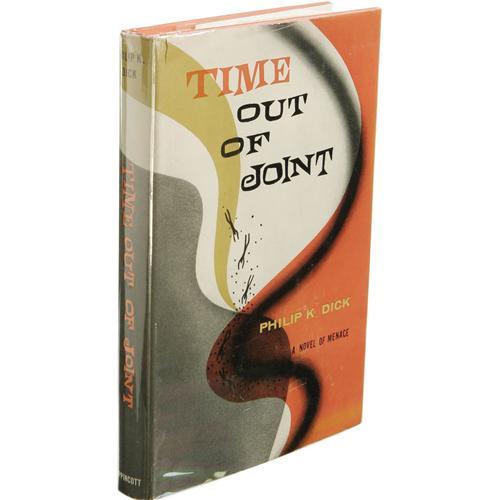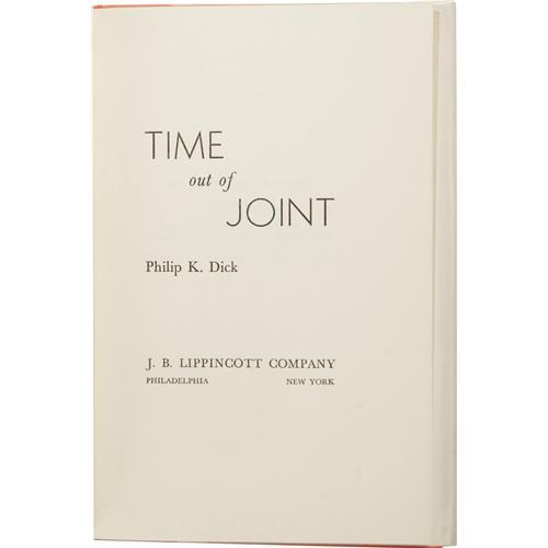 <B>Philip K. Dick:<I> Time Out of Joint.</B></I></B></I> (New York: J. B. Lippincott Company, 1959), first edition, 221 pages, jacket design by Arthur Hawkins, orange boards with black titles, 8vo (5.5" x 8.25"), small scuffed section at the top edge of boards near the spine, tiny dent to bottom edge of front board, else fine in a near fine unclipped jacket. Number 28 on David Pringle's list of 100 Best Science Fiction novels. <I>From the Ventura Collection.</B></I><BR><BR><b>Shipping:</b> Books & Catalogs (<a target="_blank" href="http://www.heritageauctions.com/common/shipping.php">view shipping information</a>)
