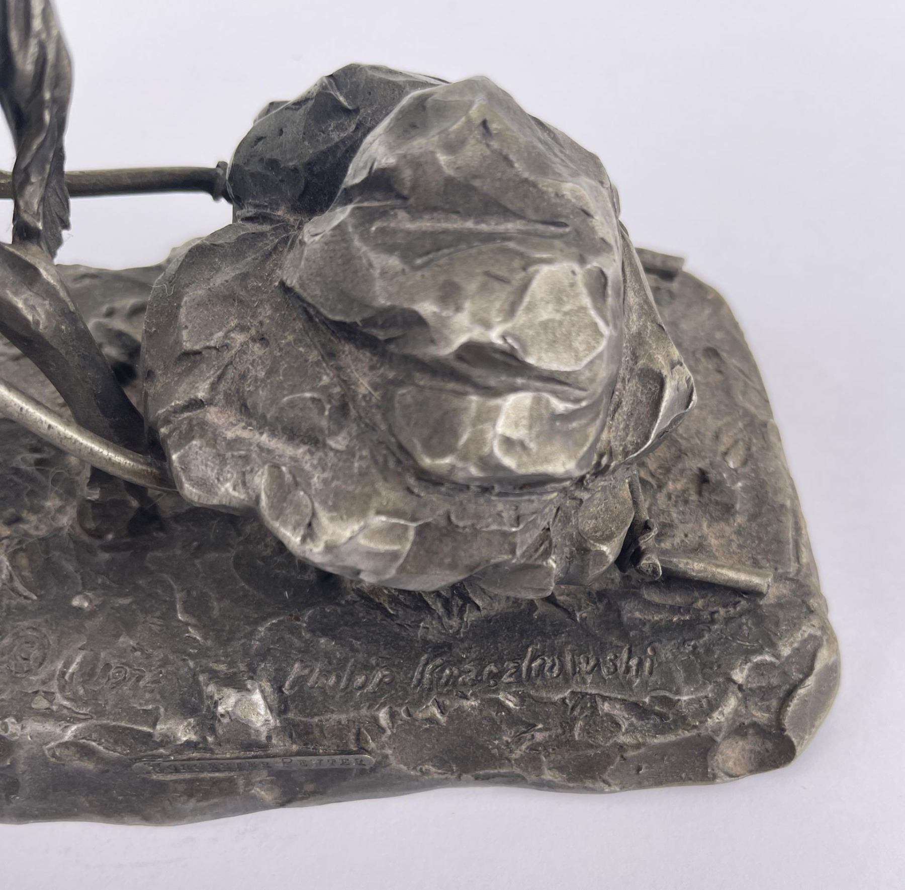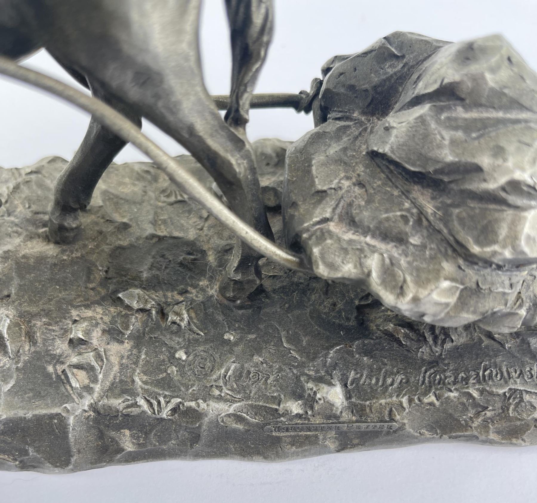Made by Worchester Pewter. Artist is Philip Kraczkowski. Has a small amount of damage as shown. 6" tall, 9" long.