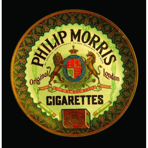 Philip Morris Cigarettes Tin Charger, some minor scratches otherwise very good condition, 16 inch diameter.