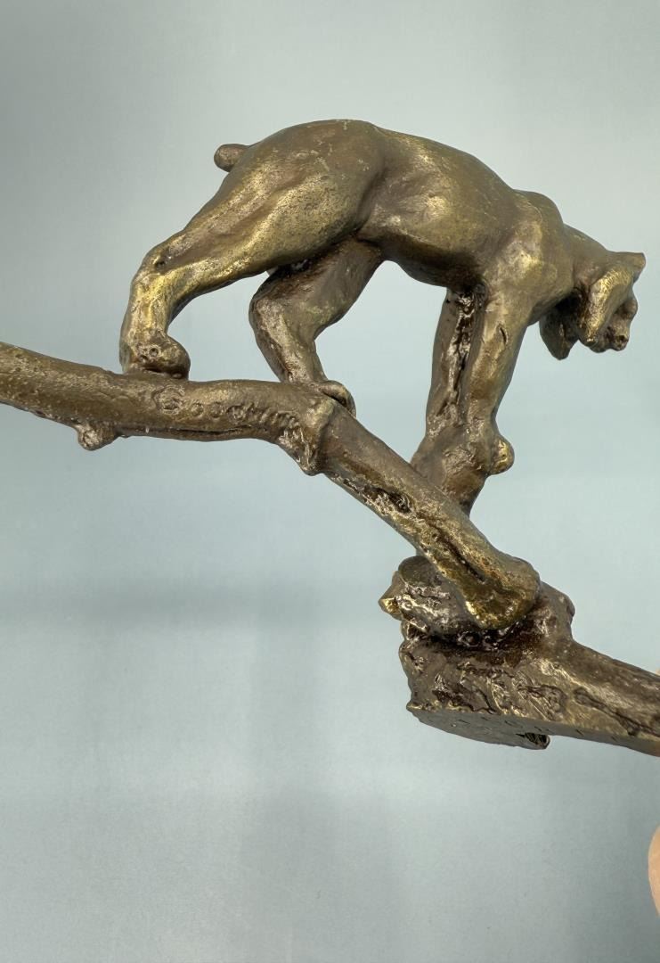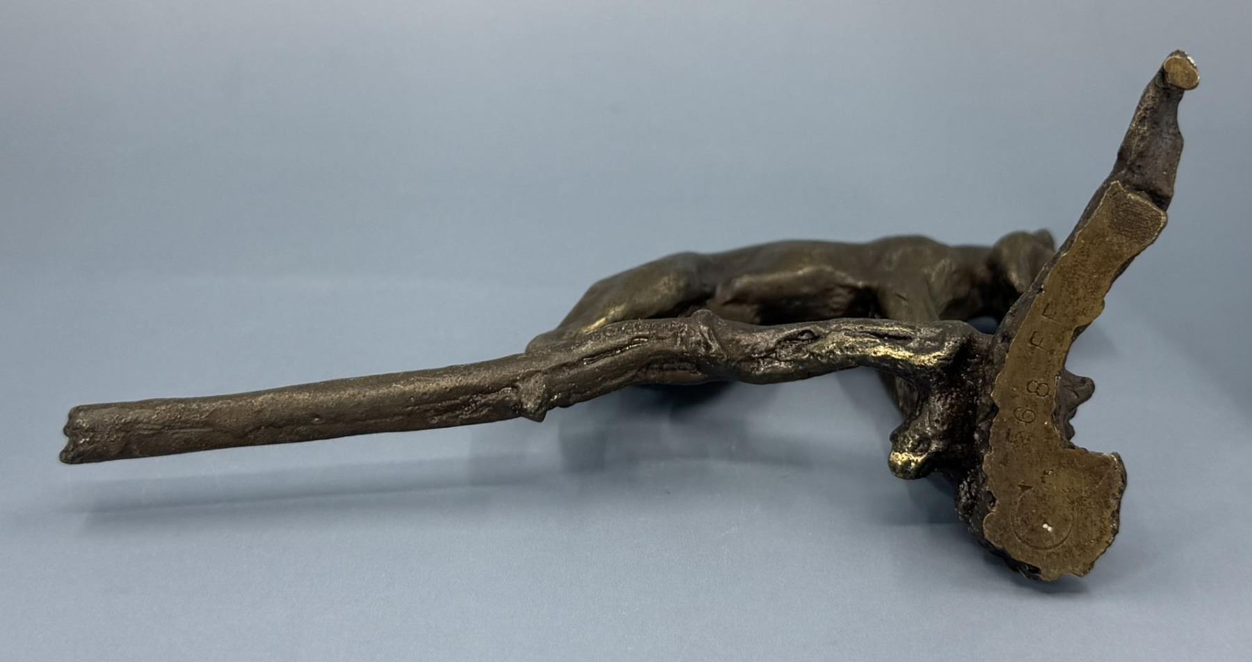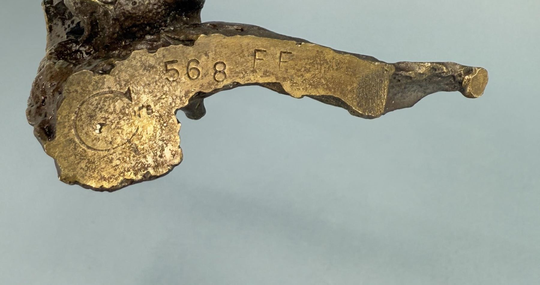 5 1/2" by 3 1/8" by 2 1/8" Philip Russell Goodwin (1881 - 1935) was active/lived in New York, Connecticut. Philip Goodwin is known for Animal, field-stream illustration. Known for his illustrations of hunting, fishing, and cowboy scenes, especially scenes featuring firearms, Philip R. Goodwin was from Norwich, Connecticut. By the age of eleven, he had already sold his first illustrations to Collier's magazine. He was educated at the Rhode Island School of Design in Providence and the Art Students' League in New York. He also studied with Howard Pyle in Pennsylvania. His works exhibit much of Pyle's earnestness and discipline, but are restricted almost entirely to subjects of hunting and fishing. In this limited area, however, he produced many notable pictures, the subject matter always convincing and dramatic in color. In his early twenties, he established a studio in New York and met Charles Russell, whose paintings of western subjects provided a great influence on Goodwin's work in that genre. Goodwin's interest in scenes of cowboys and ranch life is evident in Bronco Buster. The two men traveled together on several occasions, sketching source material for their paintings. Meanwhile, Goodwin appeared in such books as Jack London's Call of the Wild. Goodwin's pictures were also published in Harper's Monthly and Weekly, Outing, Scribner's, and Everybody's magazines, in addition to calendar subjects for Brown & Bigelow, advertising for Winchester Arms and the Marlin Firearms Company. He also illustrated African Game Trails for Theodore Roosevelt. Goodwin's interest in Charles Russell is seen not only in Goodwin's use of bright, vivid colors, but also in the romanticized subject matter, which appears to celebrate the bonding of rider and mount.