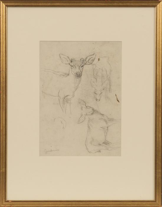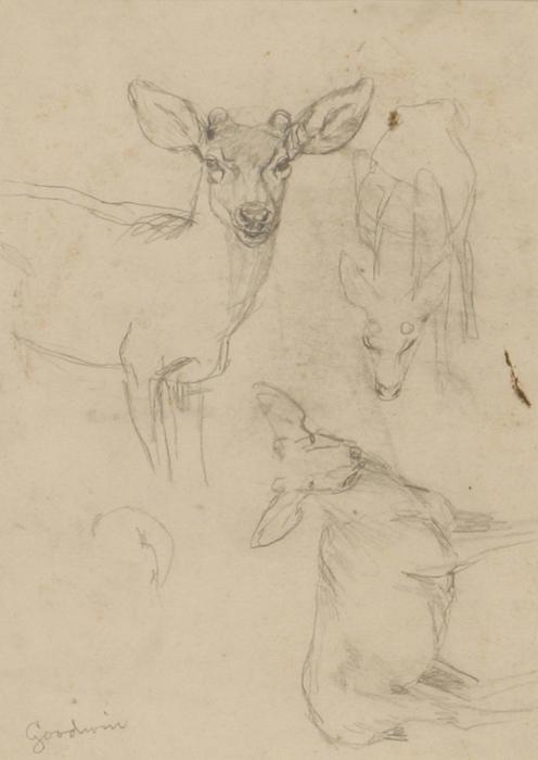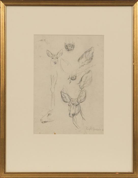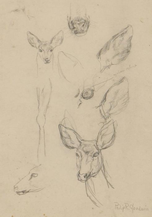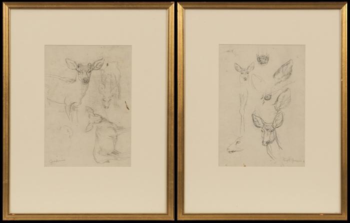 Philip R. Goodwin (1882-1935). Pair of Deer Studies. Both 10" x 7" pencil sketches. One signed lower left, one signed lower right. Condition Report: Slight foxing in both sketches.