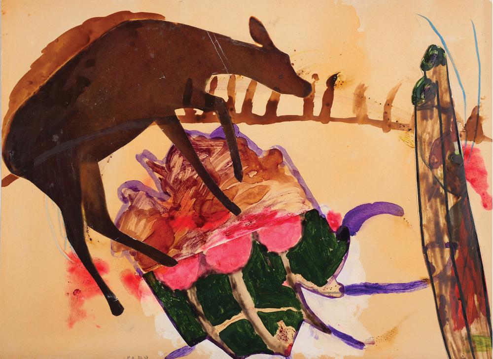 Philip Rantzer, Israeli Art, B. 1958, Doe, 1982, Mixed media on paper, 50x70cm, Signed and dated., , , , Not Framed.,
