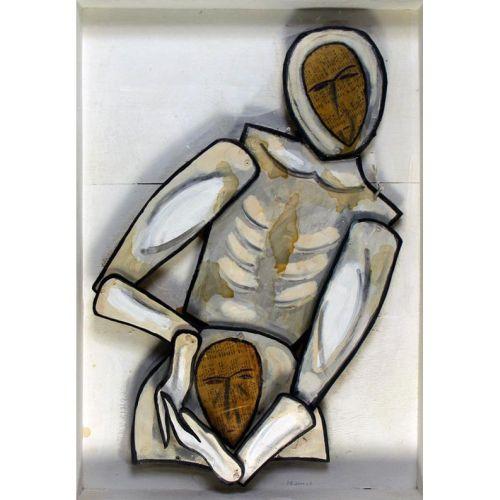 <B>Philip Rantzer</B><BR>Israeli painting<BR>B. 1956<BR>Figure<BR>2000<BR>Assemblage and mixed media on hard-board<BR>96x69cm<BR>Signed and dated.