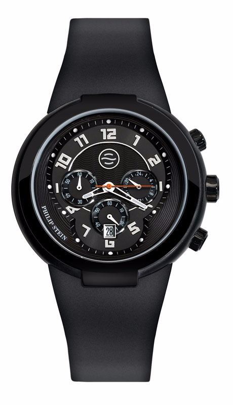 Model: 32-AB-RBB - CASE = [Material:Black Plated Stainless Steel], [Case Diameter:45], [Case Thickness:12.4mm], [Bezel:fixed], [Case Back:Solid with Central Teslar Quantum Technology Round Exhibition Aperture], [Water Resistant:30 Meters - 100 feet], [Crystal:Sapphire Coated Mineral],; DIAL = [Color:Black Chronograph],; MOVEMENT = [Type:Battery Powered Quartz],; BAND = [Clasp:Tang Buckle], [Type:Black Rubber], (In Stock - Ready to ship.)
