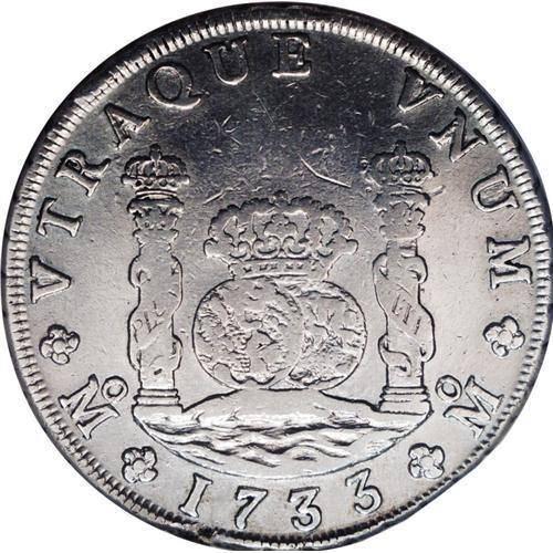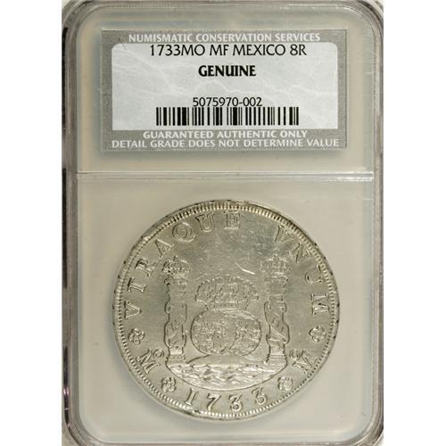 <B>Philip V 8 Reales 1733-Mo MF,</B></I> KM-103, in NCS slab as "genuine" but cleaned, VF or so, all the details and the date clear on this important rarity.<BR><BR><b>Shipping:</b> Coin/Currency (<a target="_blank" href="http://www.heritageauctions.com/common/shipping.php">view shipping information</a>)