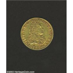 Philip V Gold 8 Escudos 1730S-S, KM346.2, Nearly XF, bold details and luster in the peripheral legen