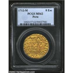 Philip V gold 8 Escudos 1712M, obverse legend: PHILIPPVS V D.G. HISPANIARVM, Cross of Jerusalem, Lions and Castles in Quarters, reverse: Pillars, PVA and Date, Mintmark, KM38.1, MS62 PCGS. Important notice: We expect to be auctioning lots at the rate of 200-250 per hour. Sometimes eBay Premier live bid software cannot keep up with that pace, so we strongly recommend that you place a realistic proxy bid now as insurance to avoid disappointment. Also please note that all Heritage/CAA lots purchased through eBay Premier carry a 20% Buyer's Premium. Please make sure you read the Terms and Conditions.