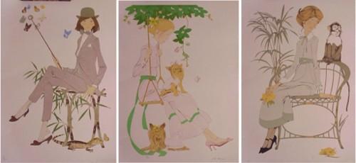 JUENES FILLES, three color lithographs, signed in pencil, from the numbered editions 150, sheets 34 ½ x 24”, soft creases, light discoloration, each with varying degrees damage at sheet edges from impact and uneven rolling, not effecting images. (3) STARTING BID $20. ESTIMATE $20 TO $1000
