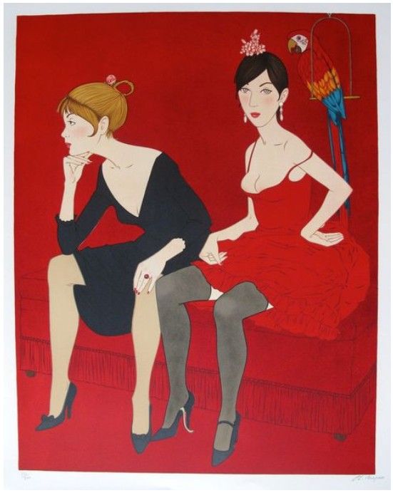 This is a limited edition hand signed lithograph by Philippe Noyer (Lyon, France, 1917 - 1985) titled "LADIES IN RED". Medium: Lithograph on thick arches paper [Hand Signed and Numbered by the artist].Edition Size: 220. Paper measures: 36" x 29". Image Measures 32" x 25". Comes with a certificate of authenticity. Comes unframed.