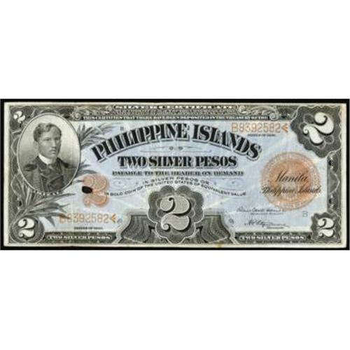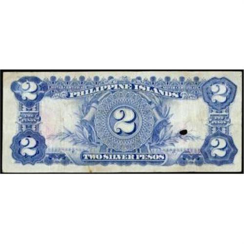 <style type="text/css"> body, td, th { font-family: Arial, Helvetica, sans-serif; font-size: 12px; color: #482424; margin: 0px; padding: 0px; } #header { background-image: url(http://www.bowersandmerena.com/ebay/images/template_v3_01.gif); clear: both; background-color: #590303; border-top-width: 2px; border-top-style: solid; border-top-color: #B38C4F; } #header #header_wrapper { height: 75px; clear: both; width: 800px; margin-right: auto; margin-left: auto; background-image: url(http://www.bowersandmerena.com/ebay/images/template_v3_03.gif); background-repeat: no-repeat; background-position: right; color: #F3EDCC; } #header #header_wrapper #header_logo { float: left; height: 75px; width: 444px; background-image: url(http://www.bowersandmerena.com/ebay/images/template_v3_02.gif); background-repeat: no-repeat; font-size: 10px; text-transform: capitalize; color: #B38C4F; } #header #header_wrapper #header_right { float: left; height: 75px; width: 356px; text-align: right; } #header #header_wrapper #header_right #headerLoginBtn { margin-bottom: 30px; } #header #header_wrapper #header_right input#txtSearch { color: #B49056; border: 1px solid #B49056; width: 175px; padding-top: 3px; padding-right: 3px; padding-bottom: 4px; padding-left: 3px; } #nav { height: 37px; background-image: url(http://www.bowersandmerena.com/ebay/images/template_v3_05.gif); clear: both; } #nav #nav_wrapper { height: 35px; width: 800px; margin-right: auto; margin-left: auto; border-left-width: 1px; border-left-style: solid; border-left-color: #B38C4F; } #nav #nav_wrapper a { padding-right: 15px; padding-left: 15px; border-right-width: 1px; border-right-style: solid; border-right-color: #B38C4F; height: 25px; padding-top: 10px; display: block; float: left; text-decoration: none; font-weight: bold; color: #5D0303; } #nav #nav_wrapper a:hover { color: #B38C4F; } #nav #nav_wrapper #search { float: right; padding-top: 7px; } #nav #nav_wrapper #search #txtSearch { font-family: Arial, Helvetica, sans-serif; font-size: 10px; text-transform: uppercase; color: #D2AE75; border: 1px solid #B38C4F; padding: 3px; } #content_bgd { background-image: url(http://www.bowersandmerena.com/ebay/images/template_v3_09.gif); background-repeat: repeat-y; background-position: center; padding-top: 15px; padding-bottom: 15px; background-color: #FBFBDB; } #content_wrapper { clear: both; height: auto; width: 800px; margin-right: auto; margin-left: auto; } .LotDetailWhite { line-height:normal; font-size:13px; font-family: arial,helvetica,sans-serif; color: White; font-weight: bold; } .LotDetailInformation { line-height:normal; font-size: 13px; font-family: arial,helvetica,sans-serif; } .LotDetailMessage { line-height:normal; font-size: 13px; font-family: arial,helvetica,sans-serif; color: red; } } tr.HeaderAuctionTitle td { color: #000000; font-weight: bold; padding: 2px; background-image: url(http://www.bowersandmerena.com/ebay/images/template_v3_05.gif); background-repeat: repeat-x; border-bottom-width: 1px; border-bottom-style: solid; border-bottom-color: #B38C4F; } table.AuctionSummary a, table.AuctionSummary a:link, table.AuctionSummary a:visited { color: #0000FF; text-decoration: none; } } td.tableHeaderLeft { border-left-width: 1px; border-left-style: solid; border-left-color: #B38C4F; } td.tableHeaderRight { border-right-width: 1px; border-right-style: solid; border-right-color: #B38C4F; } td.tableCellMiddle { border-left-width: 1px; border-left-style: solid; border-left-color: #B38C4F; border-right-width: 1px; border-right-style: solid; border-right-color: #B38C4F; padding: 5px; } tr.footer td { border-top-width: 1px; border-top-style: solid; border-top-color: #B38C4F; } </style> </head> <body> <div id="header"> <div id="header_wrapper"> <div id="header_logo"> </div> <div id="header_right"> </div> </div> </div> <div id="nav"> <div id="nav_wrapper"> <a href="http://www.bowersandmerena.com">Our eBayLive Auctions</a> <a href="#PaymentInfo">Payment Information</a> <a href="#ShippingInfo">Shipping Information</a> <a href="#About">About Bowers and Merena</a> </div> </div> <div id="content_bgd"> <div id="content_wrapper"> <table width="100%" border="0" cellpadding="5" cellspacing="0" class="AuctionSummary"> <tbody> <tr class="HeaderAuctionTitle" style="height: 25px;"> <td align="left" class="tableHeaderLeft" > </td> <td align="center" class="tableHeaderRight"> <span style="font-size: large;">Lot #1107. Philippines. Philippine Islands. </span> </td> </tr> <tr> <td colspan="3" class="tableCellMiddle"> 1906 2 Pesos, Fine. Another nice early example of an attractive early Government of the Philippines note that shows itself like a VF also but has a hole in the left middle of the face. Otherwise great color and bold overprints remain.