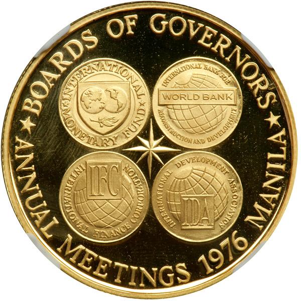 Philippines. 1500 Piso, 1976. Fr-7; KM-216. Weight 0.5946 ounce. I.M.F. Meeting. Map. NGC graded Proof 68 Ultra Cameo.