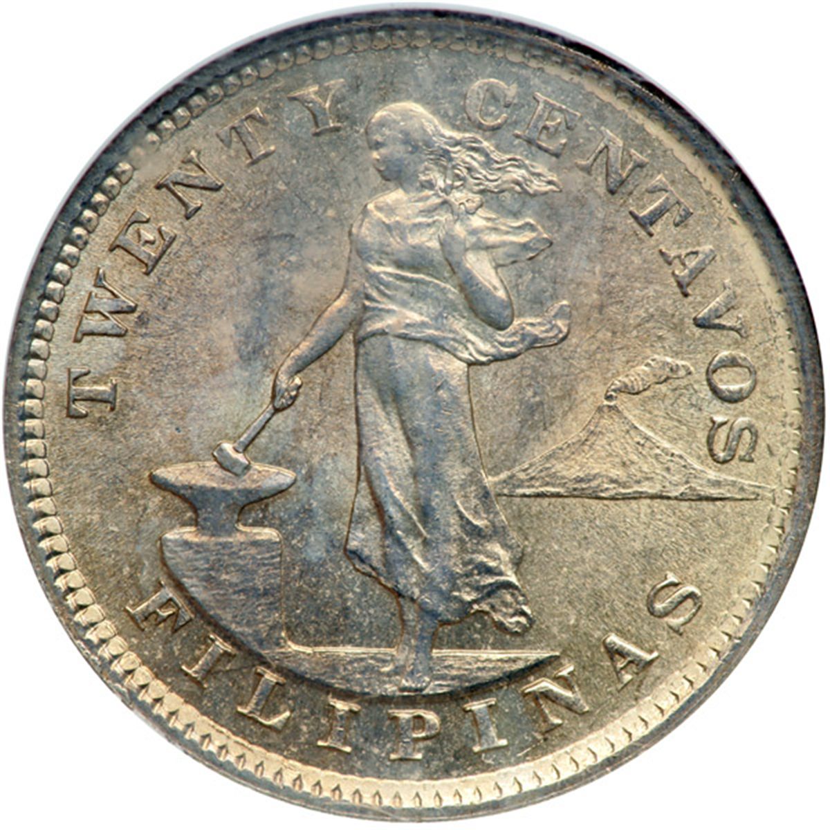 Philippines. 20 Centavos, 1903. KM-166. NGC graded MS-64.