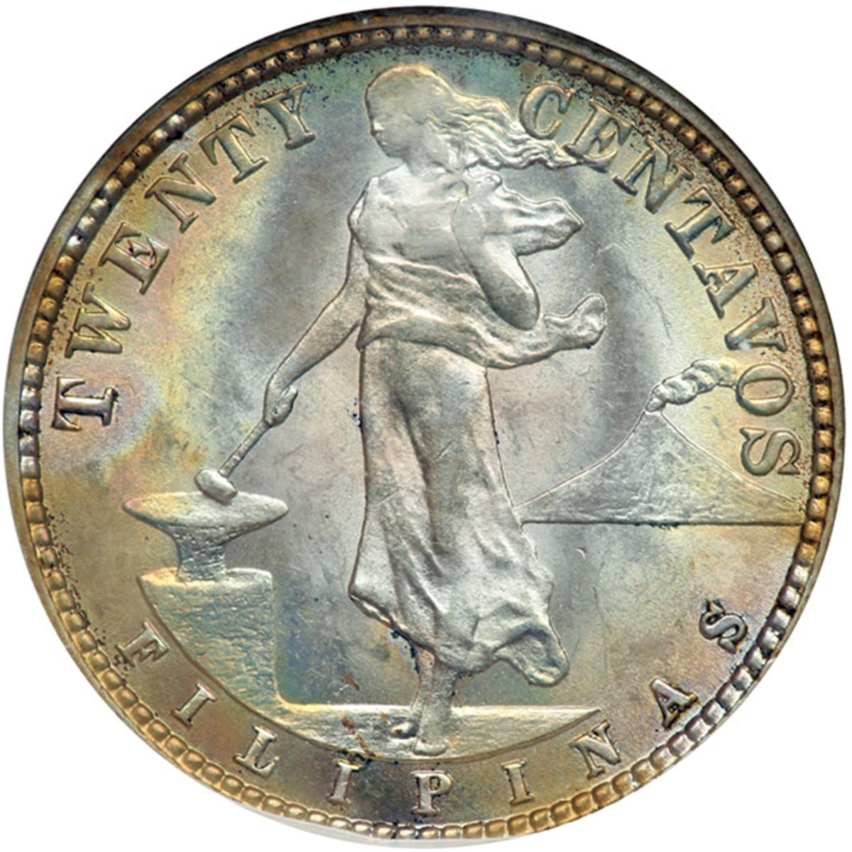 Philippines. 20 Centavos, 1918-S. ANACS MS64