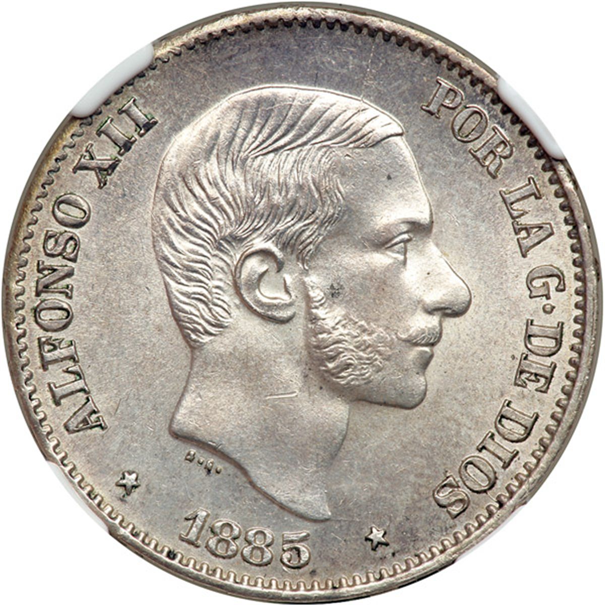 Philippines. 50 Centimos, 1885. KM-150. Alfonso XII. NGC graded MS-62.