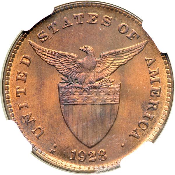 Philippines. Centavo, 1928-M. KM-163. NGC graded MS-65 Red & Brown.