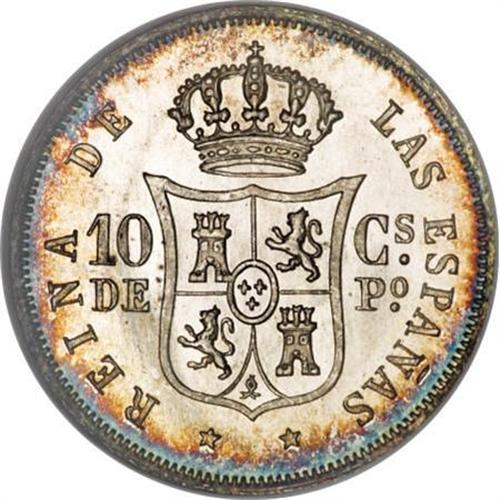 Philippines Isabella II silver 10 Centimos 1868,