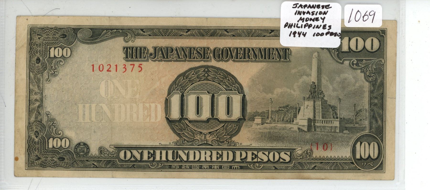 Philippines. Japanese Invasion Money. Issued by the Japanese Military during their occupation of the Philippines in 1944. 100 Pesos. VF+.