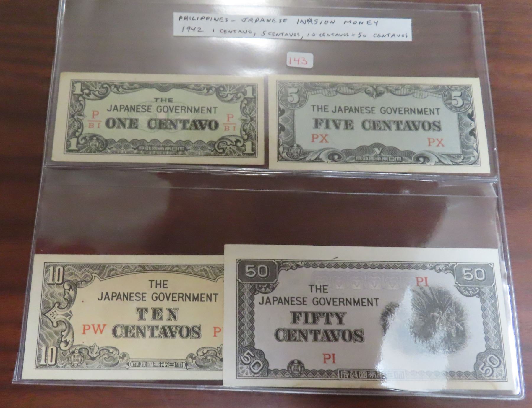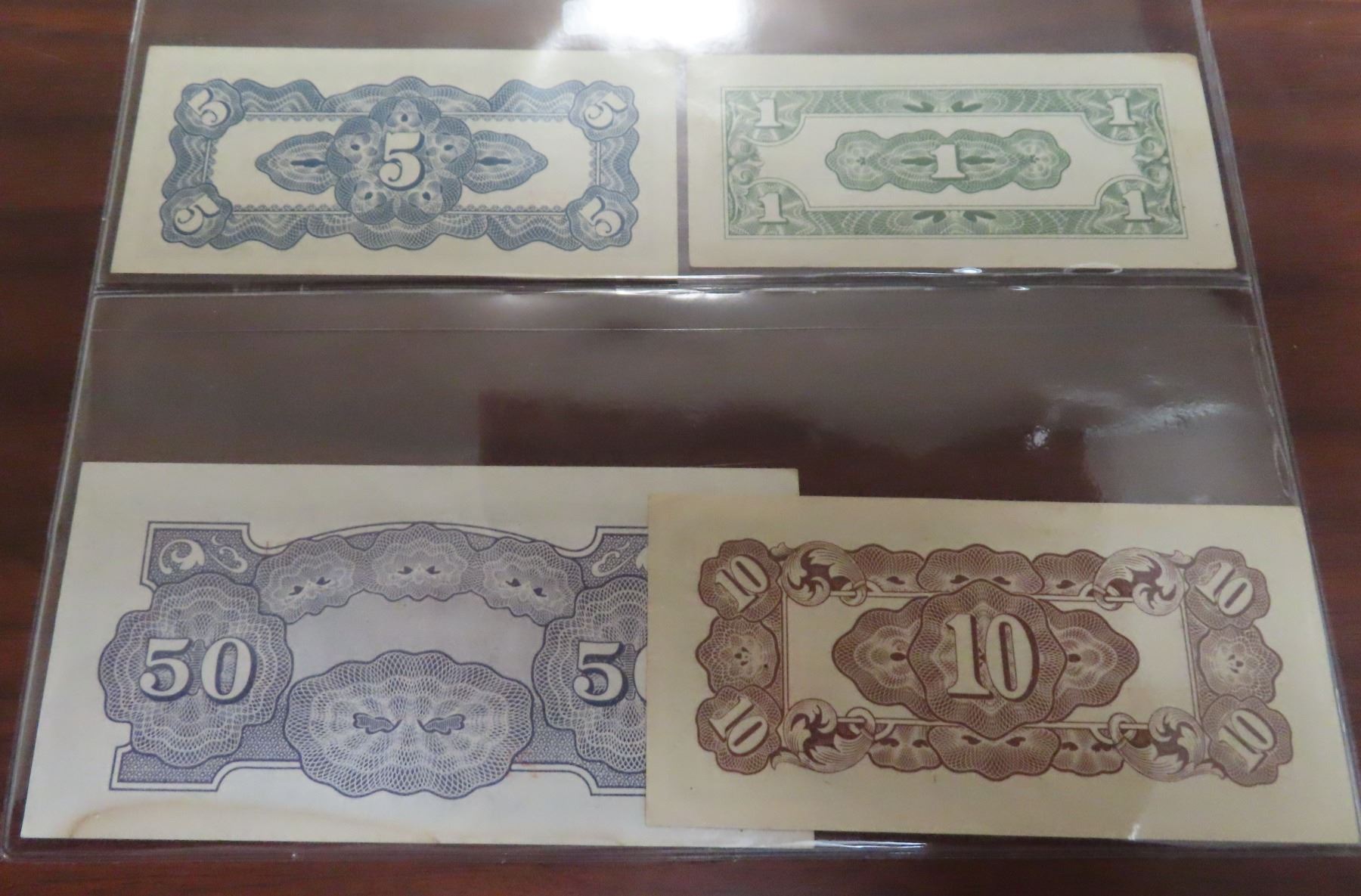 Philippines. Japanese Invasion Money. ND (1942). Lot of 4 notes for 1 centavo, 5 centavos, 10 centavos & 50 centavos. Notes grade up to EF.