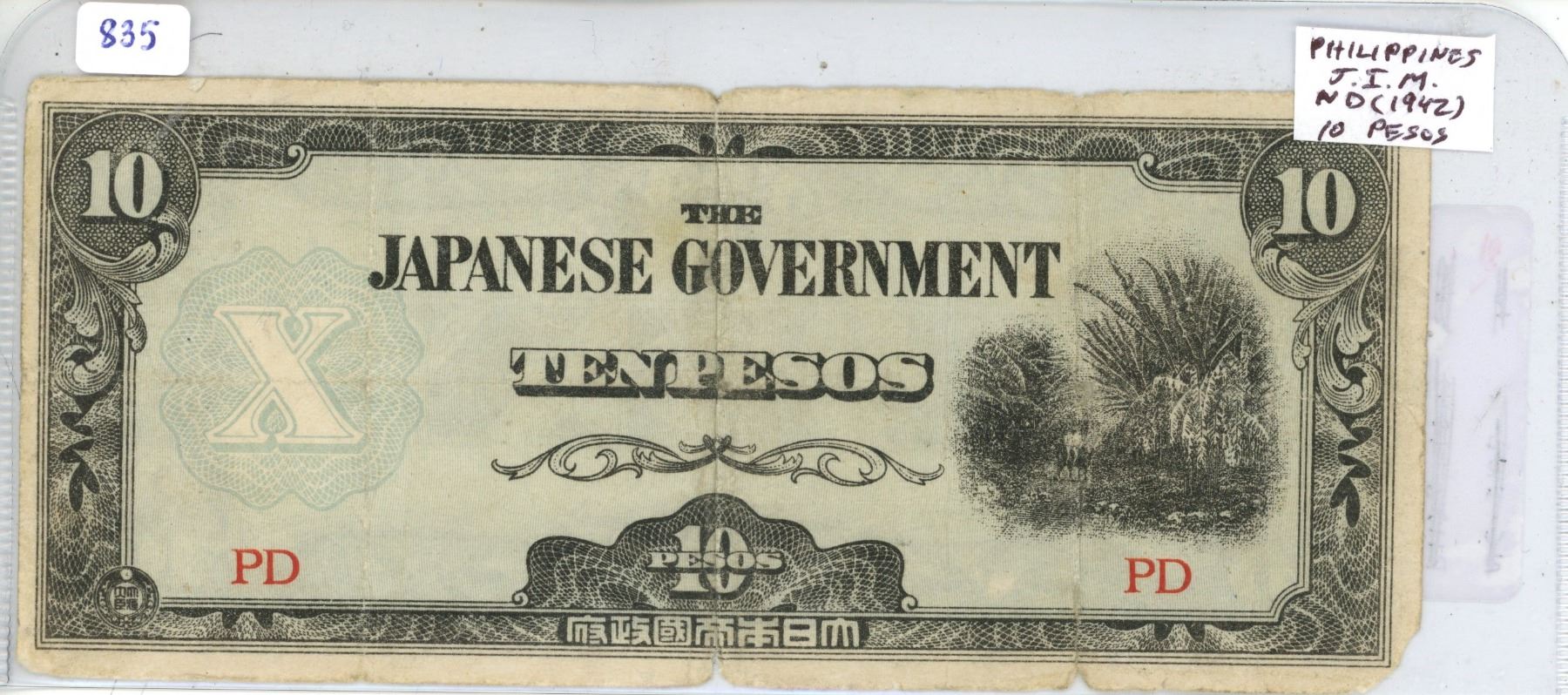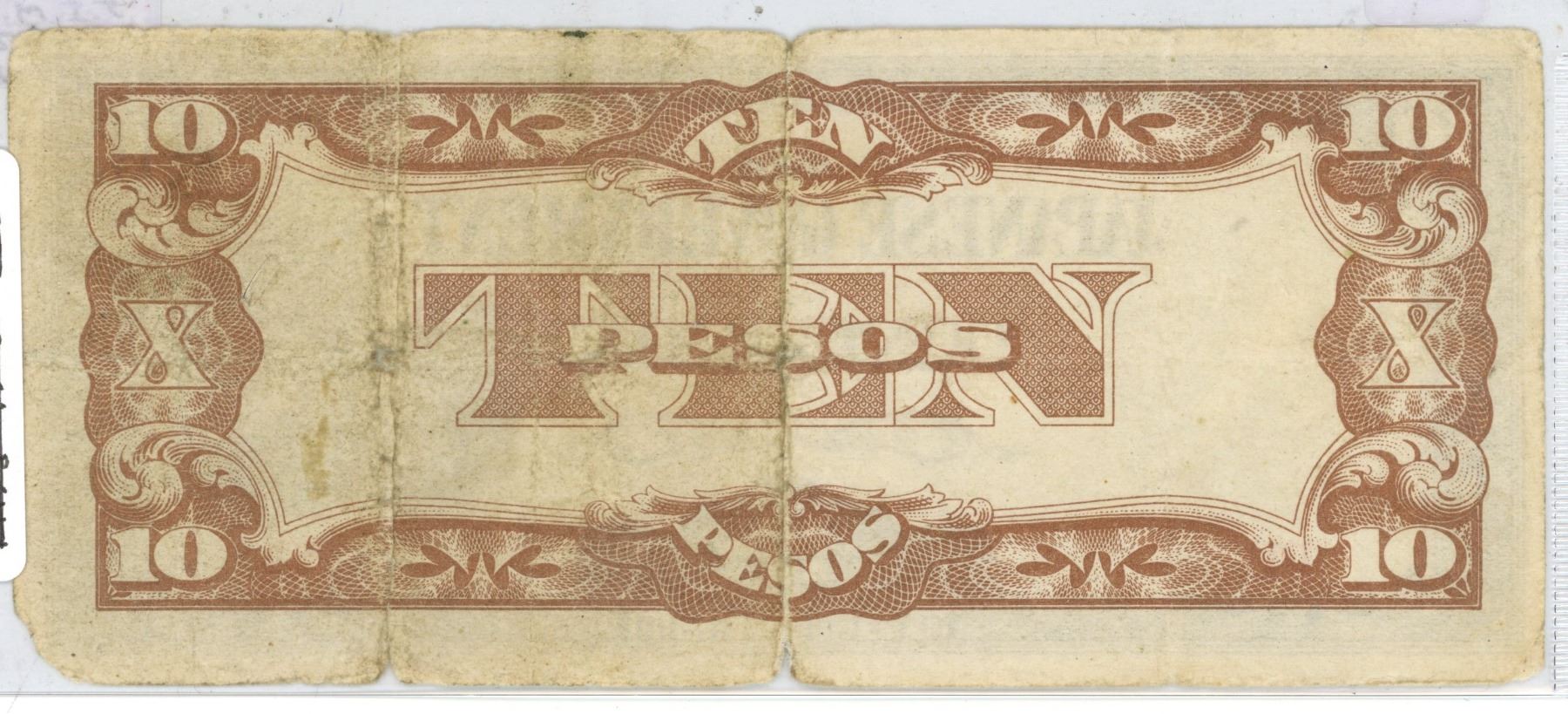Philippines. Japanese Invasion Money issued by the Japanese Military during the occupation of the Philippines. ND (1942) 10 Pesos. Good.