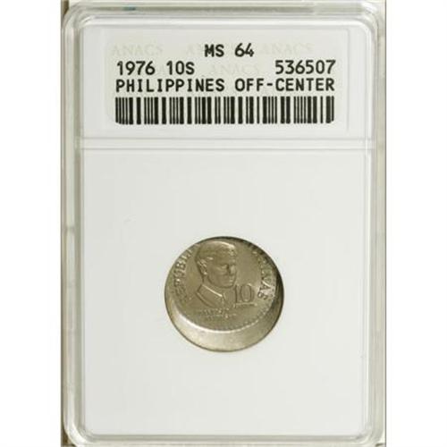 <B>Republic reform coinage 10 Sentimos 1976 error,</B></I> KM-207, MS64 Off-Center ANACS.<BR><BR><b>Shipping:</b> Coins & Currency (<a target="_blank" href="http://www.heritageauctions.com/common/shipping.php">view shipping information</a>)