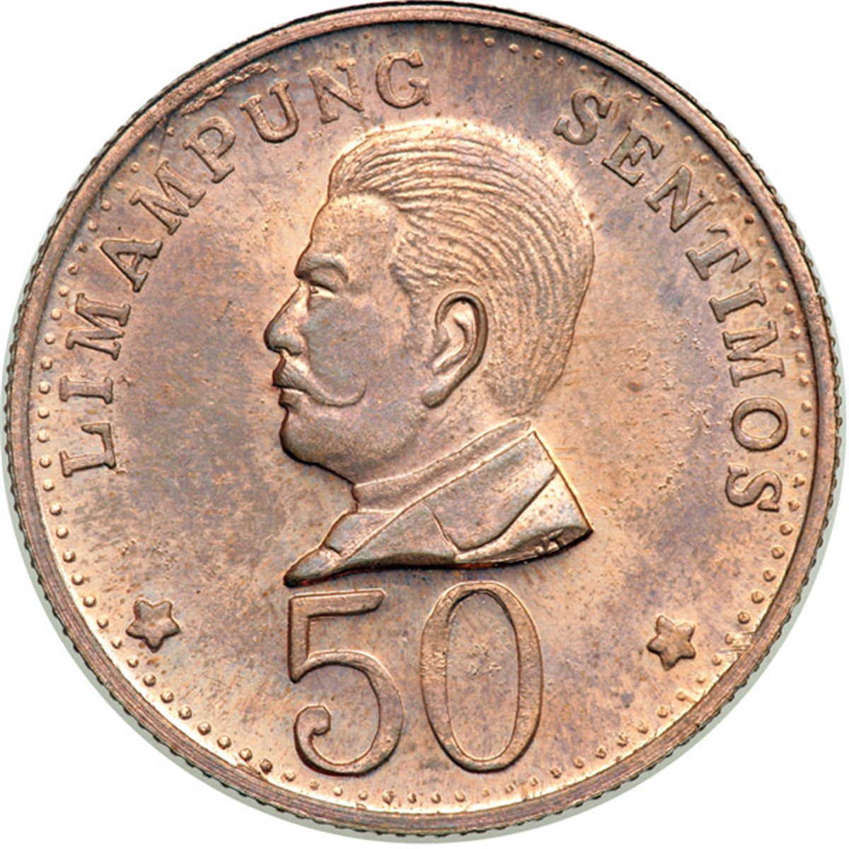 Philippines. Trial Strike 50 Sentimos, 1966. Copper. Del Pilar. Uncirculated.