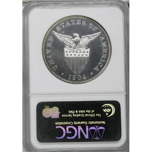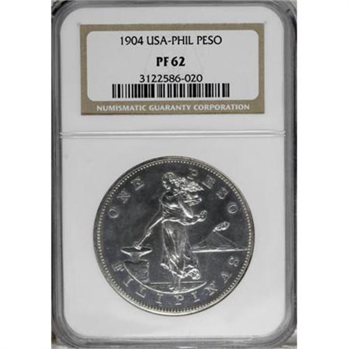 <B>USA Administration 1 Peso 1904,</B></I> KM-168, PR62 NGC, a gleaming brilliant Proof with bright mirrors and super-sharp detail. Nice coin. Mintage this year was only 1,355 proof pieces. We've seen a lot of them, and they don't look this nice very often.<BR><BR><b>Shipping:</b> Coins & Currency (<a target="_blank" href="http://www.heritageauctions.com/common/shipping.php">view shipping information</a>)