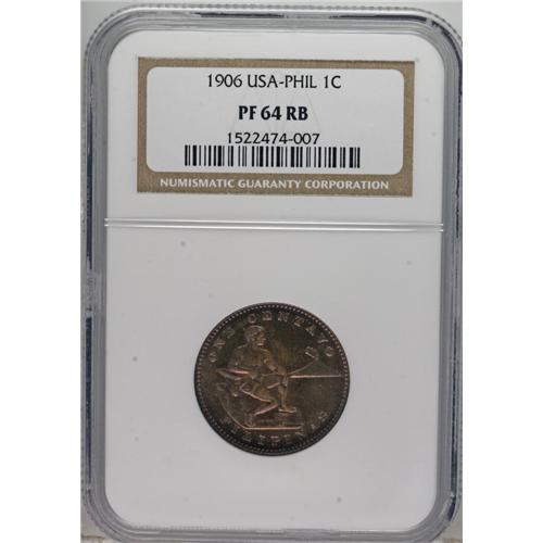 <B>USA Administration Centavo Proof 1906,</B></I> KM-163, PR64 RB NGC, identical surface color to the proof Half Centavo of 1905.<BR><BR><b>Shipping:</b> Coins & Currency (<a target="_blank" href="http://www.heritageauctions.com/common/shipping.php">view shipping information</a>)
