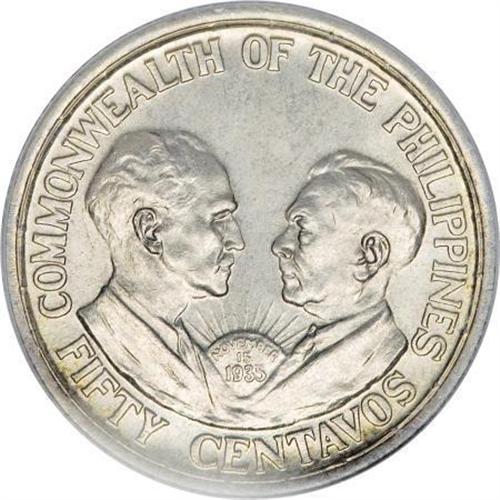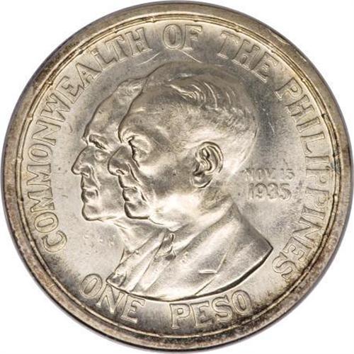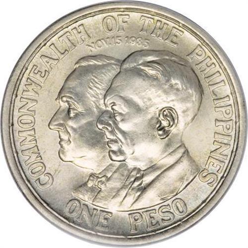 <B>USA Administration coinage of 1936-M:</B></I> 50 Centavos, KM-176, MS64 PCGS, brilliant; Peso, KM-177, Roosevelt and Quezon, MS63 PCGS, brilliant and very choice; and Peso, KM-178, Murphy and Quezon, MS64 PCGS, brilliant. Nice coins.<BR><BR><b>Shipping:</b> Coins & Currency (<a target="_blank" href="http://www.heritageauctions.com/common/shipping.php">view shipping information</a>)