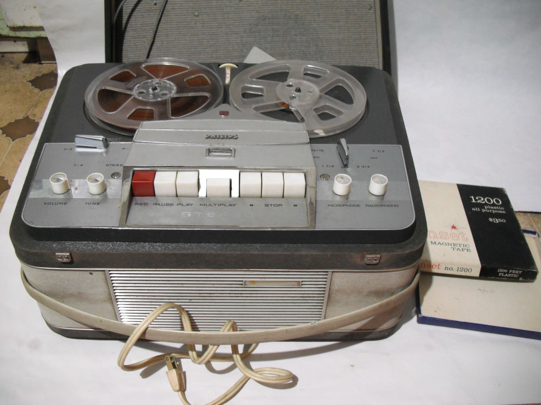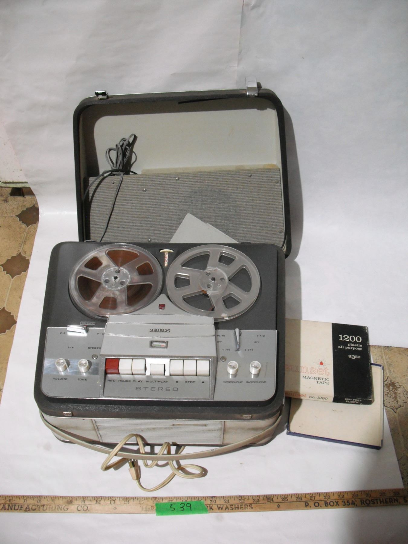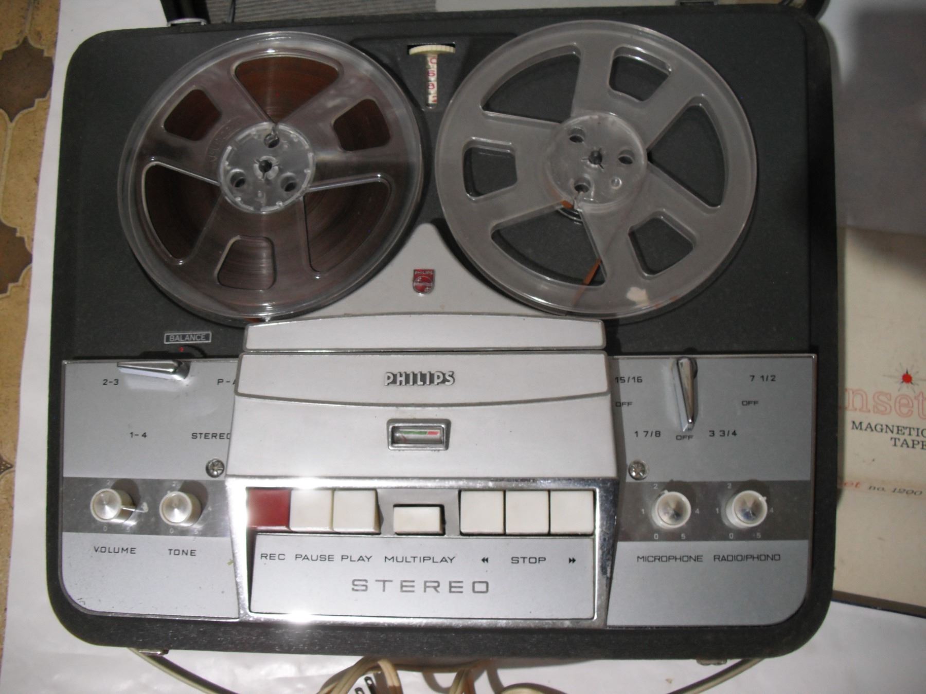 Philips reel to reel tape recorder- no 16096- powers on and plays