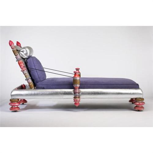 Phillip Lloyd Powell<BR>custom chaise lounge<BR>USA, c. 1960<BR>lacquered wood, silverleaf, upholstery, leather, rope<BR>83 w x 38 d x 44 h inches<BR>This work is unique. Signed to frame: [Phillip Lloyd Powell Made for H. Berman Allentown PA].<BR>Provenance: <BR>H. Berman, Allentown, PA<BR><BR>Condition of the item is not included in this description. Condition reports are available from Wright upon request. Wright strongly recommends that you review a condition report for each item on which you plan to bid.