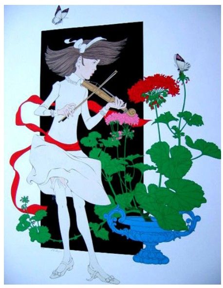 This is a limited edition original hand signed lithograph titled “SYMPHONY TE A GARANIUM”. This is an from an edition of 250. Image Size: 48" x 38". Medium is lithograph on thick arches paper with gorgeous rich colors. Comes with a certificate of authenticity. Comes unframed