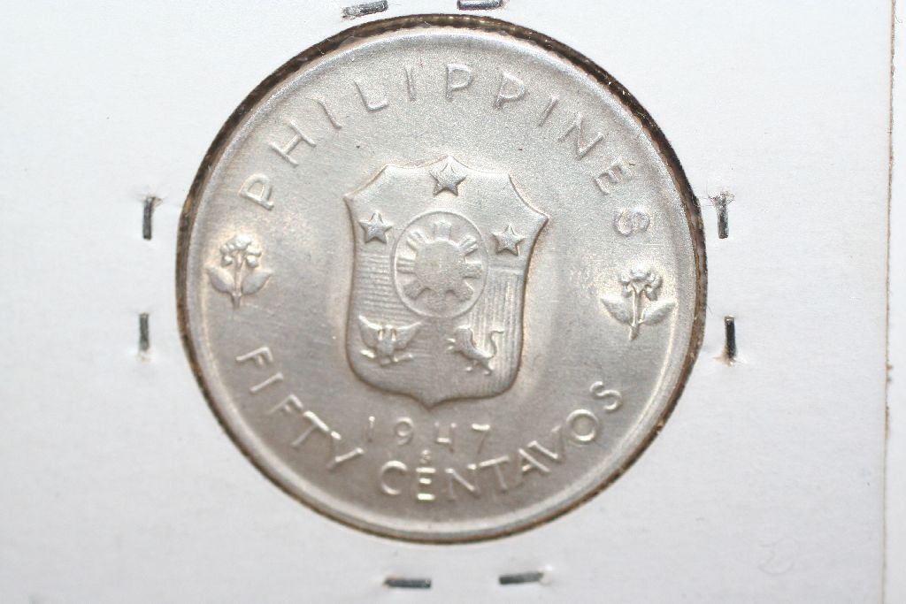 This lot is a 1947-s philippines 50 centavos coin