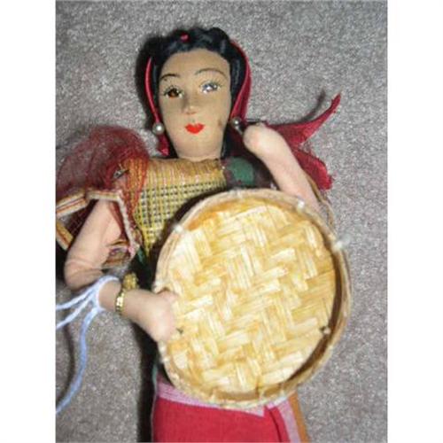 This 9" doll represents the Phillipines. She is made of cloth. Her head turns and she has a black wig with a red scarf as her headpiece. She has bendable arms. She is made of a nylon type material. Her features are painted on. She is nice and clean but has darker spots on the top of her feet. Maybe something was glued there at one time. That's what it looks like to me. She is colorful and has not tears, stains, or rips. She is from a smoke free environment. If you can love her, please bid. Buyer to pay $10 for U.S. shipping, insurance, and handling. Thanks for viewing.