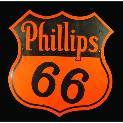 Phillips 66, two sided die cut porcelain sign. Original neon, no glass. From the Veribrite Sign Company Chicago. Tiny edge chips otherwise excellent condition. 47 x 47 inches.