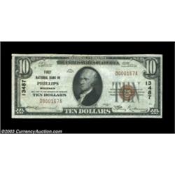 Phillips, WI - $10 1929 Ty. 1 First NB Ch. # 13487A high grade example which is certain to please. E