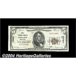 Phillips, WI - $5 1929 Ty. 1 First NB Ch. # 13487The census reports more than a fair number of notes from here, but the Gengerke data shows only about a dozen offerings from this bank during the past six decades. This is certainly one of the nicer examples we've seen. Extremely Fine. <BR><BR><B>Important notice:</B> Heritage usually auctions material at the rate of 200-250 lots per hour. On some occasions eBay Live bid software or the Internet may not be able to keep up with the pace of the auction. We recommend placing a realistic absentee bid now as insurance to avoid disappointment. Occasionally the auctioneer may eliminate or reject an eBay Live bid, and the auctioneer may also reopen a lot after the close of the eBay live bidding (usually because we missed an audience bid), and may reject your bid even if it shows you as the winning bidder. By bidding via eBay Live, you agree that Heritage may award the lot to another bidder at its sole discretion under the circumstances described above or any other reasonable circumstances. Since eBay bids are not shown to us until we open the lot on the floor, we treat those bids just like floor bids. In most cases the floor responds before the eBay bid is presented to us, due to Internet lag time, so for consistency we have made it a policy that floor bids are always considered first over tie eBay live bids. Also please note that all Heritage lots purchased through eBay Live carry a 20% Buyer's Premium. Please make sure you read the Terms and Conditions before you bid. <BR><BR><B>IMPORTANT ANNOUNCEMENT ABOUT RESERVES:</B> Heritage now divulges all reserves on its web site 7 days before every auction. If you want to know whether the reserve on this lot has been met, and if not, what the reserve amount is, please visit this lot page on the HeritageCoin.com web site, or email: bid@HeritageGalleries.com