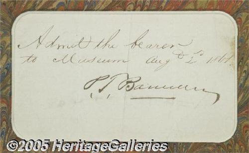Phineas T. Barnum Signed Pass to Barnum's Museum,