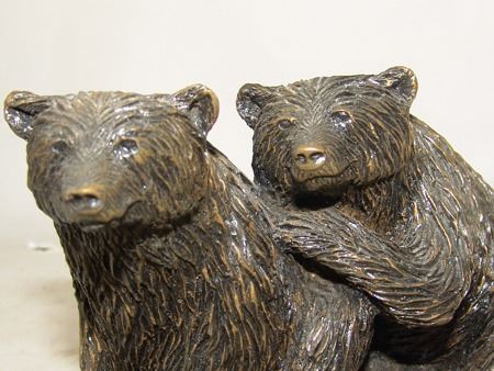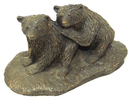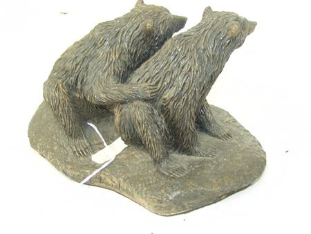 Late 1900s, Fine signed limited edition (#56/500) cast composite "bronze" sculpture showing two grizzly bears. Very good condition. arty