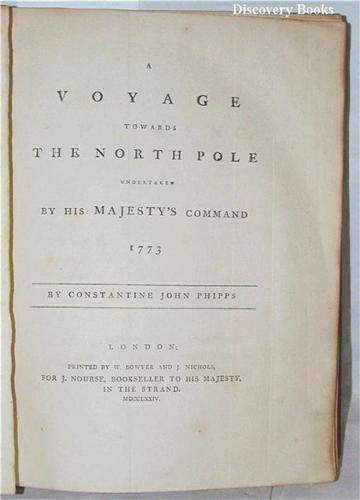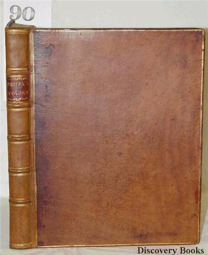 Phipps, Constantine John. A VOYAGE TOWARDS THE NORTH POLE UNDERTAKEN BY HIS MAJESTY'S COMMAND 1773. London: W. Boyer & J. Nichols for J. Nourse 1774 4to. viii,253(2,directions to binder)pp. Fifteen plates & maps, some folding, folding tables.. Old full polished calf, nicely done later reback. Minor edge wear, just a touch of scattered foxing, but a very good, large copy.