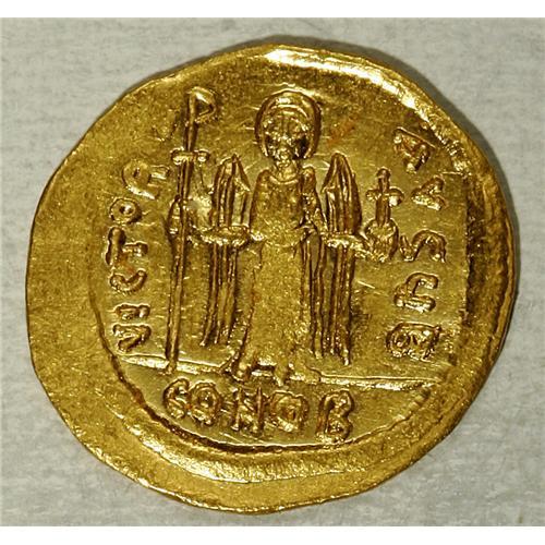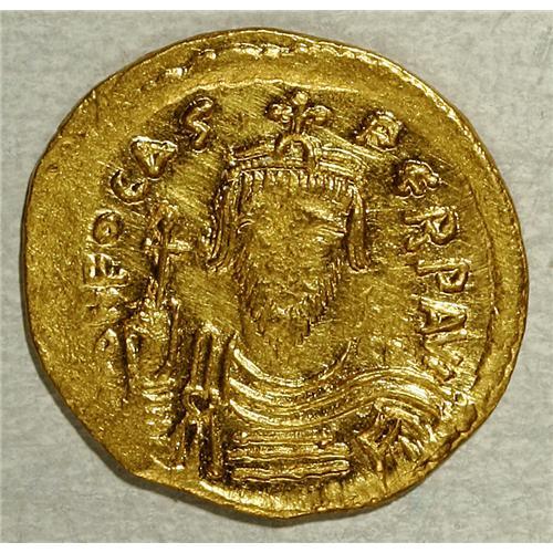<B>Phocas.</B></I> 602-610. AV solidus (21 mm, 4.44 g). Constantinople, 607-610. Crowned facing bust, holding globus cruciger / Victory standing facing, holding long P-headed cross and globus cruciger; B/CONOB. DOC II 10b; SB 620. <B>VF,</B></I> central striking weakness.<BR><BR><b>Shipping:</b> Coin/Currency (<a target="_blank" href="http://www.heritageauctions.com/common/shipping.php">view shipping information</a>)