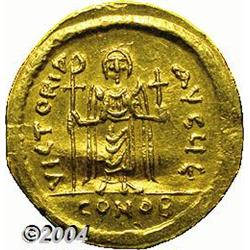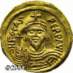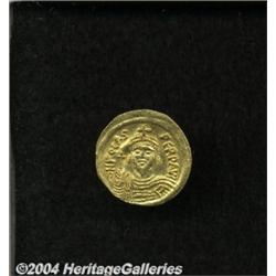 <B>Phocas.</B></I> A.D. 602-610. AV solidus (21 mm, 4.44 g). Constantinople, A.D. 607-610. Crowned facing bust, holding cross / Angel standing facing, holding long P-headed cross and globus cruciger; E/CONOB. DOC 10e; SB 620. Nice VF, light crease. <BR><I>From the Geneva Collection.</B></I> <BR><BR><B>Important notice:</B> Heritage usually auctions material at the rate of 200-250 lots per hour. On some occasions eBay Live bid software or the Internet may not be able to keep up with the pace of the auction. We recommend placing a realistic absentee bid now as insurance to avoid disappointment. Occasionally the auctioneer may eliminate or reject an eBay Live bid, and the auctioneer may also reopen a lot after the close of the eBay live bidding (usually because we missed an audience bid), and may reject your bid even if it shows you as the winning bidder. By bidding via eBay Live, you agree that Heritage may award the lot to another bidder at its sole discretion under the circumstances described above or any other reasonable circumstances. Since eBay bids are not shown to us until we open the lot on the floor, we treat those bids just like floor bids. In most cases the floor responds before the eBay bid is presented to us, due to Internet lag time, so for consistency we have made it a policy that floor bids are always considered first over tie eBay live bids. Also please note that all Heritage lots purchased through eBay Live carry a 20% Buyer's Premium. Please make sure you read the Terms and Conditions before you bid.