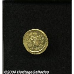 <B>Phocas.</B></I> A.D. 602-610. AV solidus (20 mm, 4.44 g). Constantinople, A.D. 607-610. Crowned facing bust, holding cross / Angel standing facing, holding long P-headed cross and globus cruciger; I/CONOB. DOC 10j; SB 620. Superb XF. <BR><I>From the Geneva Collection.</B></I> <BR><BR><B>Important notice:</B> Heritage usually auctions material at the rate of 200-250 lots per hour. On some occasions eBay Live bid software or the Internet may not be able to keep up with the pace of the auction. We recommend placing a realistic absentee bid now as insurance to avoid disappointment. Occasionally the auctioneer may eliminate or reject an eBay Live bid, and the auctioneer may also reopen a lot after the close of the eBay live bidding (usually because we missed an audience bid), and may reject your bid even if it shows you as the winning bidder. By bidding via eBay Live, you agree that Heritage may award the lot to another bidder at its sole discretion under the circumstances described above or any other reasonable circumstances. Since eBay bids are not shown to us until we open the lot on the floor, we treat those bids just like floor bids. In most cases the floor responds before the eBay bid is presented to us, due to Internet lag time, so for consistency we have made it a policy that floor bids are always considered first over tie eBay live bids. Also please note that all Heritage lots purchased through eBay Live carry a 20% Buyer's Premium. Please make sure you read the Terms and Conditions before you bid.