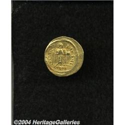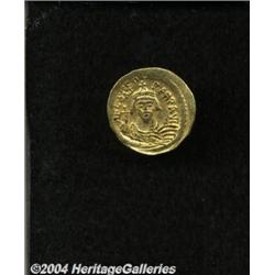 <B>Phocas.</B></I> A.D. 602-610. AV solidus (22 mm, 4.28 g). Constantinople, A.D. 607-610. Crowned facing bust, holding cross / Angel standing facing, holding long P-headed cross and globus cruciger; I/CONOB. DOC 10j; SB 620. VF. <BR><I>From the Geneva Collection.</B></I> <BR><BR><B>Important notice:</B> Heritage usually auctions material at the rate of 200-250 lots per hour. On some occasions eBay Live bid software or the Internet may not be able to keep up with the pace of the auction. We recommend placing a realistic absentee bid now as insurance to avoid disappointment. Occasionally the auctioneer may eliminate or reject an eBay Live bid, and the auctioneer may also reopen a lot after the close of the eBay live bidding (usually because we missed an audience bid), and may reject your bid even if it shows you as the winning bidder. By bidding via eBay Live, you agree that Heritage may award the lot to another bidder at its sole discretion under the circumstances described above or any other reasonable circumstances. Since eBay bids are not shown to us until we open the lot on the floor, we treat those bids just like floor bids. In most cases the floor responds before the eBay bid is presented to us, due to Internet lag time, so for consistency we have made it a policy that floor bids are always considered first over tie eBay live bids. Also please note that all Heritage lots purchased through eBay Live carry a 20% Buyer's Premium. Please make sure you read the Terms and Conditions before you bid.