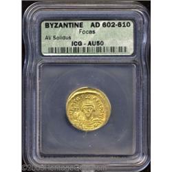 <TABLE cellSpacing=0 cellPadding=0 width="100%" bgColor=#000000 border=0><TBODY> <TR><TD width="100%"><TABLE cellSpacing=1 cellPadding=3 width="100%" border=0><TBODY><TR><TD width="100%" bgColor=#79735c><FONT face=arial color=#ffffff size=3><B>Description</B> </FONT></TD></TR><TR><TD width="100%" bgColor=#ffffff><FONT face=arial size=2><B>Phocas.</B></I> A.D. 602-610. AV solidus (21 mm). Constantinople, A.D. 607-610. Crowned and draped bust facing, holding globus cruciger / Angel standing facing, holding long staff surmounted by a Christogram in right hand, globus cruciger in left; A/CONOB. DOC 10a; SB 620. AU50 ICG. </FONT></TD></TR></TBODY></TABLE></TD></TR></TBODY></TABLE><BR><A name=PricesRealized></A><TABLE cellSpacing=0 cellPadding=0 width="100%" bgColor=#000000 border=0><TBODY><TR><TD width="100%"><TABLE cellSpacing=1 cellPadding=3 width="100%" border=0><TBODY><TR><TD width="100%" bgColor=#79735c><A name=PR><FONT face=arial color=#ffffff size=3><B>Previous Prices from Heritage Auctions</B> </FONT></A></TD></TR><TR><TD bgColor=#f6f6ed>No Prior Data Recorded </TD></TR><TR><TD bgColor=#ffffff><FONT face=arial size=1 ?>PLEASE NOTE: All prices realized reflect the final hammer price PLUS the buyer's premium in auctions that charge a buyer's premium. Each item has a notation at the top of the listing indicating whether that lot included a buyer's premium. Example: A item that sells with a final hammer price of $100 and a 20% buyer's premium will display with a price realized of $120. All information listed is intended to be as accurate as possible, but errors are possible. Please use this guide carefully and inform us of any inaccuracies. </FONT></TD></TR></TBODY></TABLE></TD></TR></TBODY></TABLE><BR><TABLE cellSpacing=0 cellPadding=0 width="100%" bgColor=#000000 border=0><TBODY><TR><TD width="100%"><TABLE cellSpacing=1 cellPadding=3 width="100%" border=0><TBODY><TR><TD width="100%" bgColor=#79735c colSpan=6><FONT face=arial color=#ffffff size=3><B>Price Guide*</B> </FONT></TD></TR><TR bgColor=#f6f6ed><TD align=middle><B>Grade</B> </TD><TD align=middle><B>Coin World<BR>(Trends)</B> </TD><TD align=middle><B>Numismedia<BR>Retail</B> </TD><TD align=middle><B>Numismedia<BR>Wholesale</B> </TD><TD align=middle><B>Coin<BR>Universe</B> </TD><TD align=middle><B>Heritage<BR>Value Index</B> </TD></TR><TR bgColor=#ffffff><TD colSpan=6><FONT size=1>*All information listed is intended to be as accurate as possible, but errors are possible. No item may be returned or refused based on this information which is provided as a service to our customers. You should contact each pricing source directly to determine the accuracy of this information. </FONT></TD></TR></TBODY></TABLE></TD></TR></TBODY></TABLE><BR><TABLE cellSpacing=0 cellPadding=0 width="100%" bgColor=#000000 border=0><TBODY><TR><TD width="100%"><TABLE cellSpacing=1 cellPadding=3 width="100%" border=0><TBODY><TR><TD width="100%" bgColor=#79735c><FONT face=arial color=#ffffff size=3><B>Population Guide</B> </FONT></TD></TR><TR bgColor=#ffffff> Important notice: Heritage usually auctions material at the rate of 200-250 lots per hour. On some occasions eBay Live bid software or the Internet may not be able to keep up with the pace of the auction. We recommend placing a realistic absentee bid now as insurance to avoid disappointment. Occasionally the auctioneer may eliminate or reject an eBay Live bid, and the auctioneer may also reopen a lot after the close of the eBay live bidding (usually because we missed an audience bid), and may reject your bid even if it shows you as the winning bidder. By bidding via eBay Live, you agree that Heritage may award the lot to another bidder at its sole discretion under the circumstances described above or any other reasonable circumstances. Also please note that all Heritage lots purchased through eBay Live carry a 20% Buyer's Premium. Please make sure you read the Terms and Conditions before you bid.</TD></TR></TBODY></TABLE></TD></TR></TBODY></TABLE>
